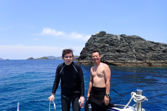 お客様:山川様、比嘉様 ボート体験ダイビング ポイント:前島