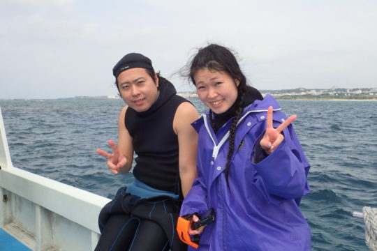 お客様:小川様夫婦 ボート体験ダイビング ポイント:北谷「砂