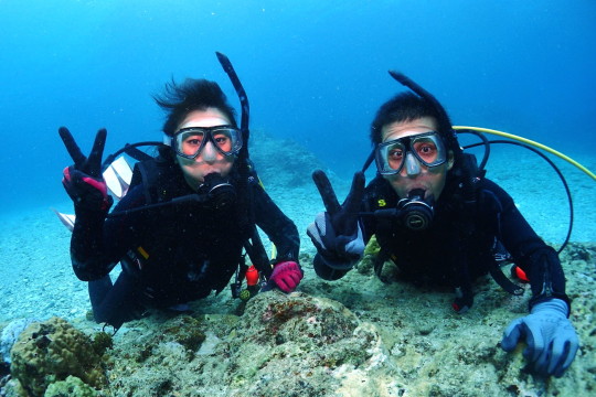 今日はダイビングが全く初めてと言うお2人と、体験ダイビングをしてきました。