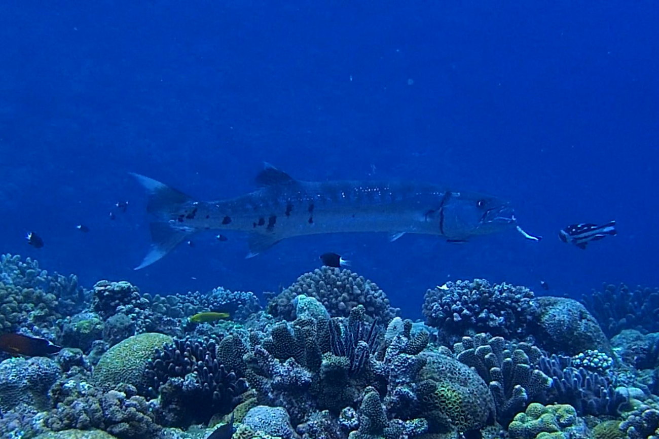 浅瀬では、のんびり泳いでいる大きなバラクーダが!