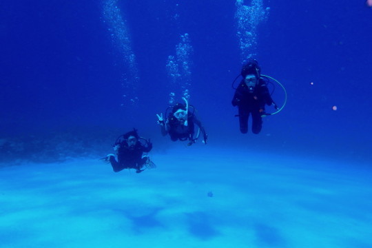 今日は、透明度バッチリ!慶良間でダイビング。 一本目は、白い砂地の上をゆったりと。