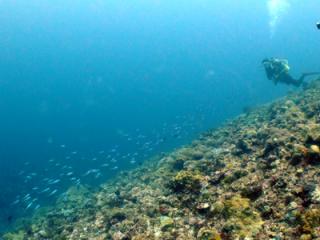 本日は柴田様・稲垣様・百々様と、チシ・ユヒナ浜・ウチャカシで潜って来ました。朝は豪雨でどうなる事かと思いましたが、潜る頃には落ち着き気持ち良く潜れました。一本目から透明度抜群で、テンションあがりましたね。イセエビのマンションやサンゴの群生、遺跡の様な地形にたくさんの魚の群れも良かったです。皆さん、また潜りましょうね!!(みずえ)